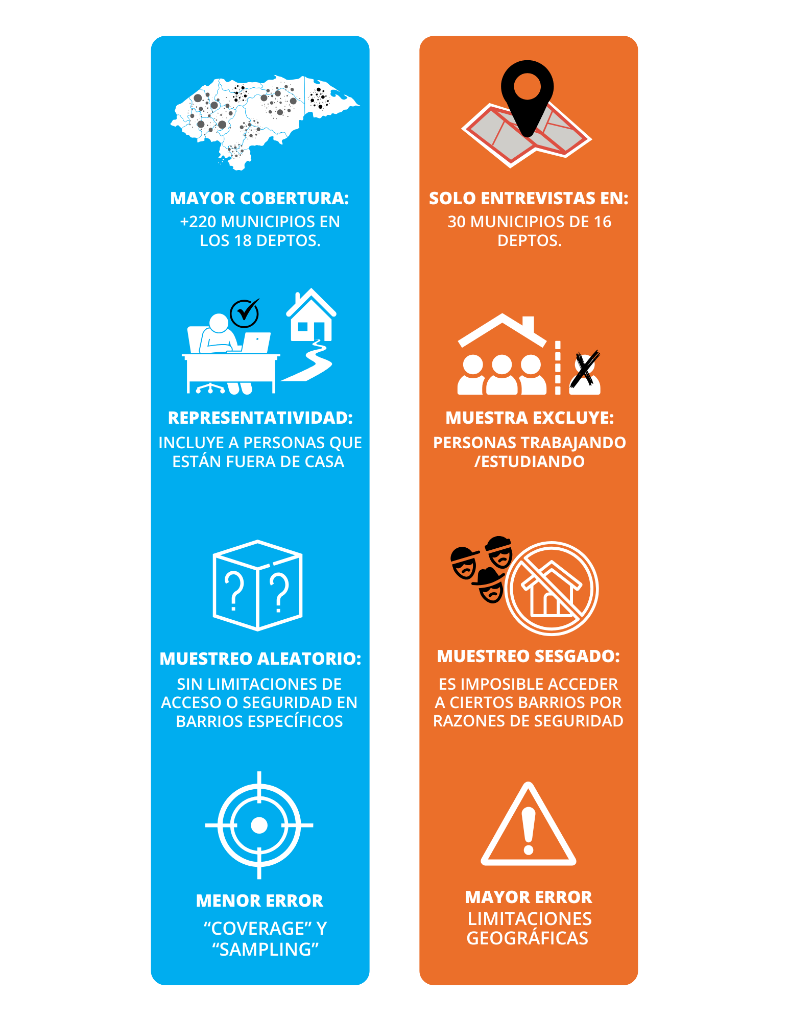 Las encuestas se realizarán utilizando el sistema CATI (encuestas telefónicas asistidas por computadora), una técnica moderna que permite contactar a más de 7.7 millones de hondureños con teléfono celular. Este método garantiza amplia cobertura y representatividad nacional, abarcando los 18 departamentos y 290 municipios del país. Al incluir personas que no suelen estar en casa y eliminar limitaciones geográficas o de seguridad, se logra un alcance más equilibrado y diverso. Con un muestreo aleatorio simple y un nivel de confianza del 95%, ofrece resultados precisos, confiables y verificables.