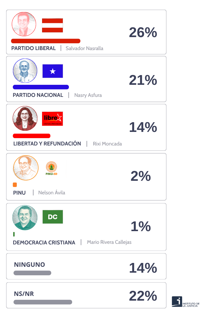 El 26% de los encuestados expresó que, independientemente de si votará o no, prefiere que Salvador Nasrralla sea presidente.